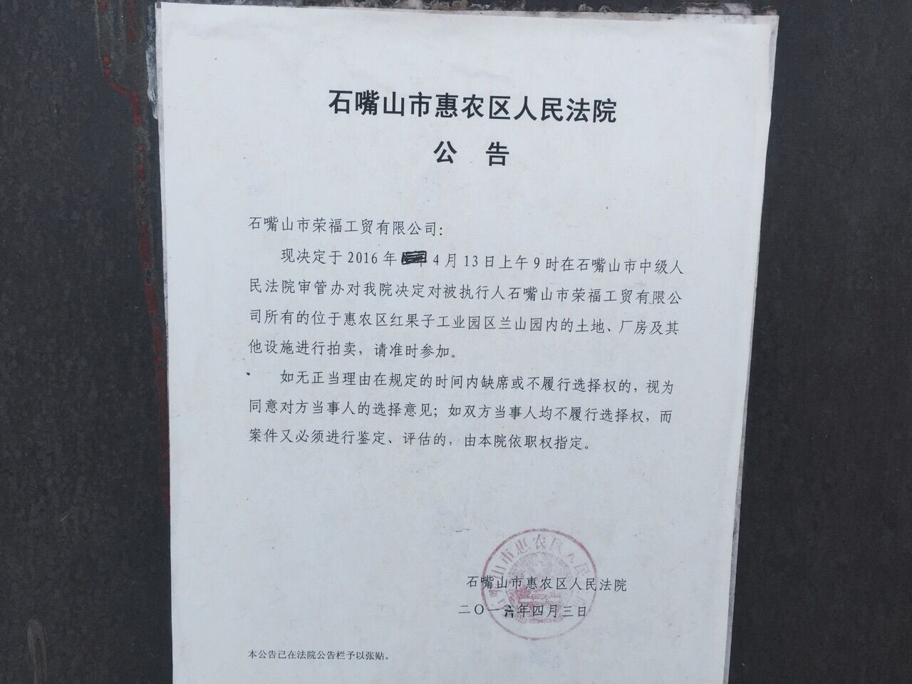 惠農(nóng)區(qū)紅果子鎮(zhèn)蘭山園內(nèi)的土地及地上建筑物、院內(nèi)設(shè)備拍賣